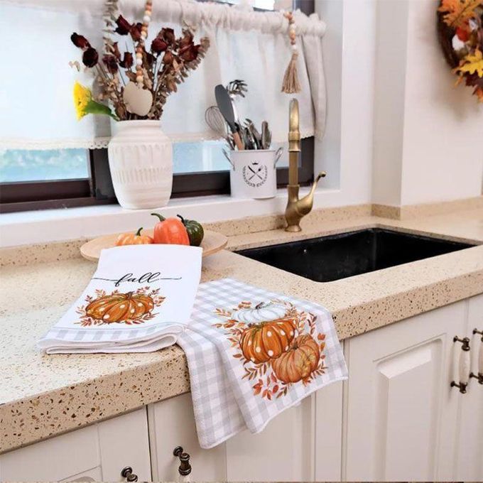 Autumn Maple Leaf Pumpkin Kitchen Dish Towel