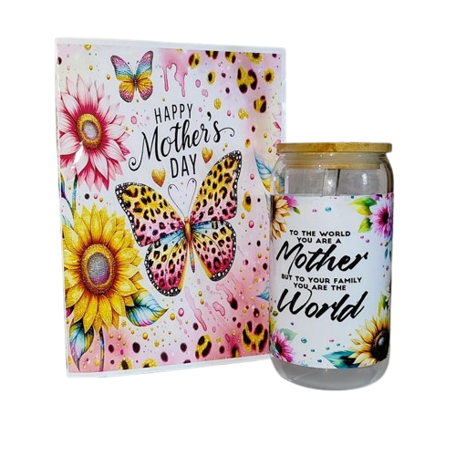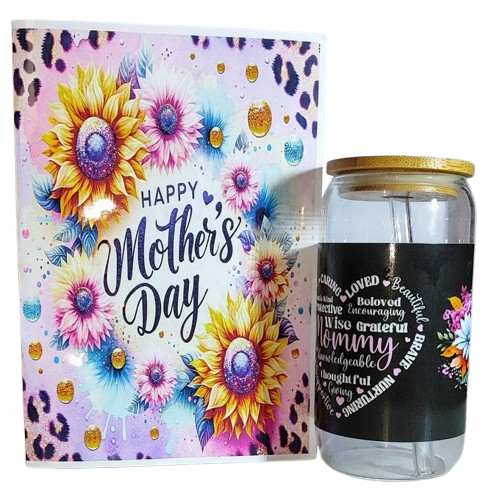 Make Mum feel extra special with this heart felt gift combo, a high quality glass jar with a lid and glass straw and a complimentary gift card with a stylishly crafted design. A Glass Half Full of Personality.  It is the ideal gift for Mum on Mothers Day, her birthday or any other special occasion.