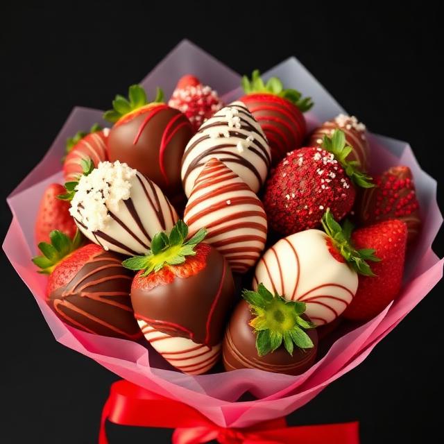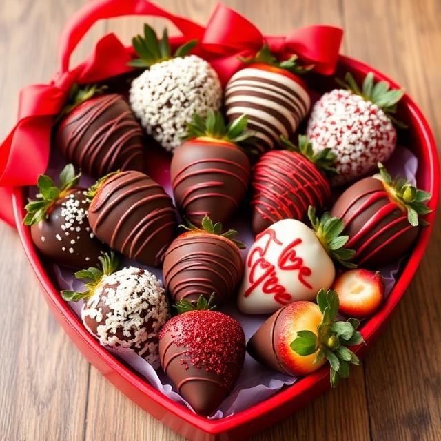 Want to pamper your loved one and make them feel special? Treat them to a bouquet of love of 12 flower cupcakes or 12 chocolate coated strawberries in a shape of a bouquet or in a heart shaped gift box.