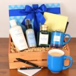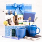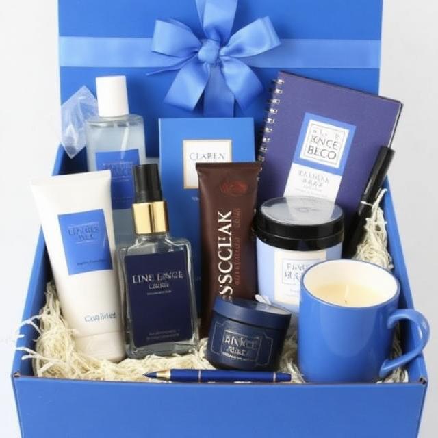Can include from : chocolates, sweets, mixed dried fruits and mixed nuts, coffee /tea, thermos flask, mug, candle, notebook and pen, perfume, grooming and personal care items, men stationery gift set