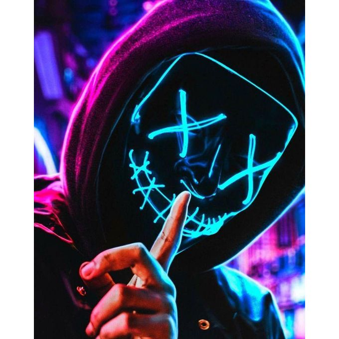 The Halloween Scary Mask a unique and creepy look gives the Halloween or cosplay party a spooktacular atmosphere. Its surely one to stop everyone in their tracks! Regardless of where you are, you get a lot of attention from others who are curious about your Light Up Face Mask. Available in purple and blue light colour.