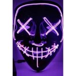 Key features include : 4 Light Modes Design –The LED Mask has 4 light modes, off, steady on light, slow strobe and quick strobe, and you can press the button on the controller as needed and switch. Safe and secure : The LED light up mask is made of premium PVC and El cold light wire which has no peculiar smell, NO adverse effects on the human body.One Size for All- Halloween purge mask designed with an adjustable strap, Adjustable strap makes scary mask fits for most adults, and the protective pad inner the forehead of the mask make it more comfortable when you wear it.Portable Mask -Halloween Purge mask, there is a controller with clip, you can clip the controller to your pocket or onto your clothing. Takes 2* AA batteries (Not included). Multi-use : The glow mask is suitable for Halloween, costume party, rave party, disco, birthday party, masquerade, carnival, masquerade and other festivals, You will be the talk the party with this mask!.