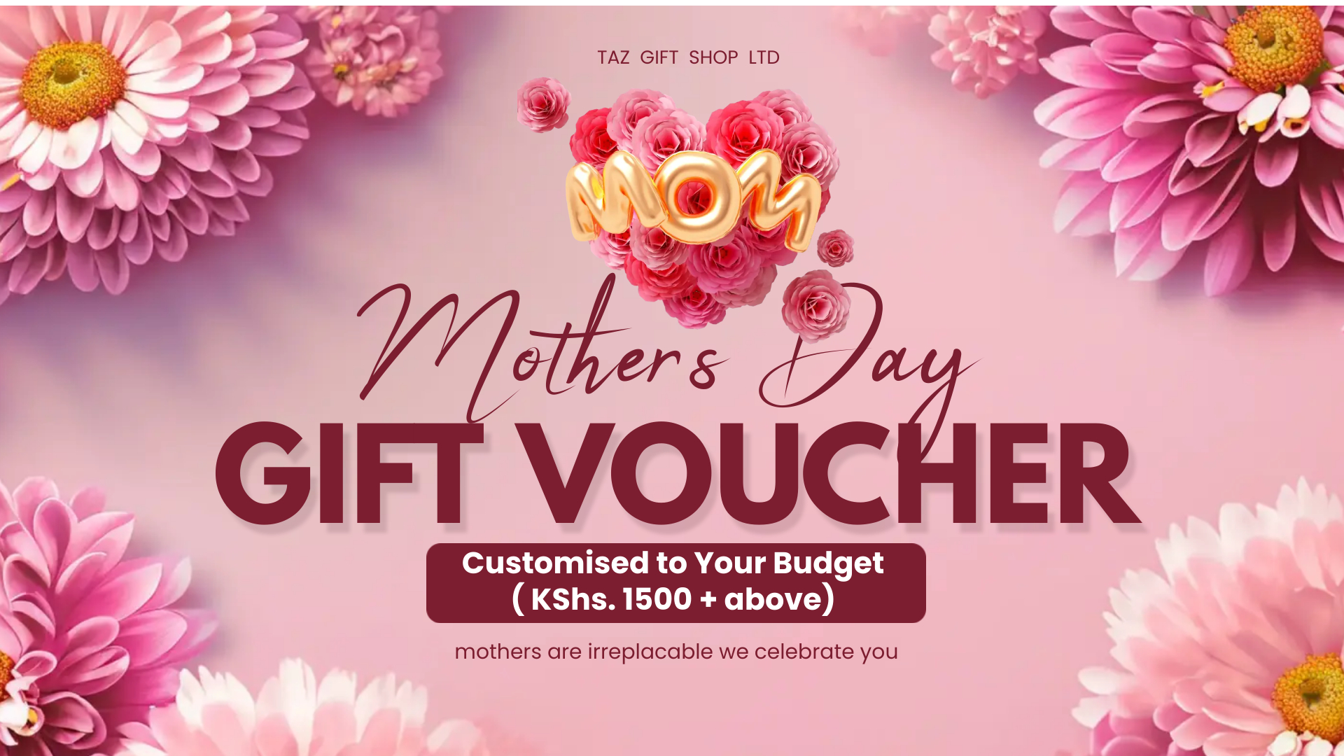 Customisable Mothers Day Voucher available to personalise for her according to your budget.